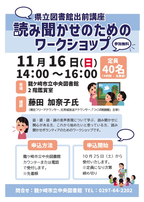 お問合せ: 龍ケ崎市立中央図書館 TEL:0297-64-2202