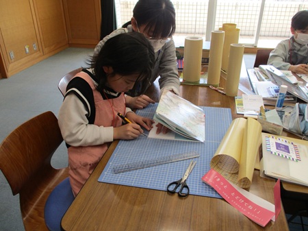 選んだ本が汚れないよう、ビニールでコートする作業も自分たちの手で。